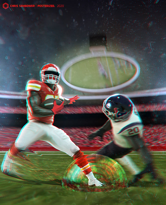 Clyde Edwards-Helaire had a great game to start his career with the Chiefs. He had one especially awesome cutback during a long run and I knew immediately it would make a great painting.